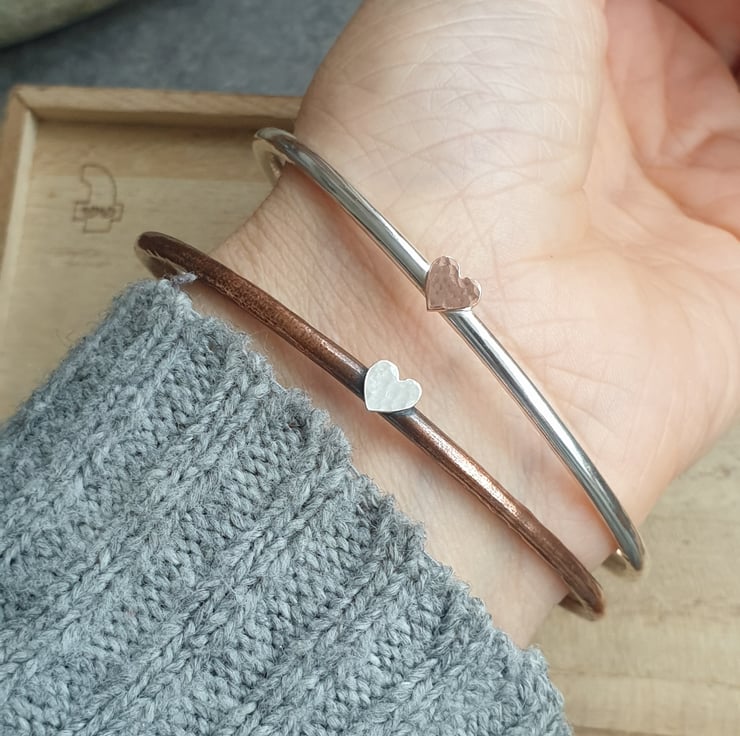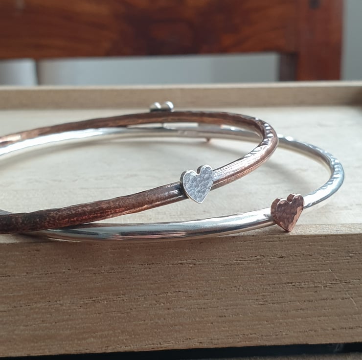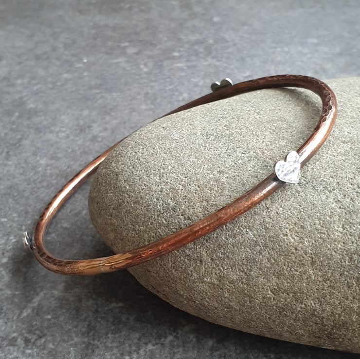The copper heart bangle would make a great gift for anyone who loves rustic boho jewellery or a lovely 7th anniversary gift. The same style of bangle is also available in sterling silver with copper hearts as shown in the second and third to last photos. It can be found in the bracelet section of my shop.