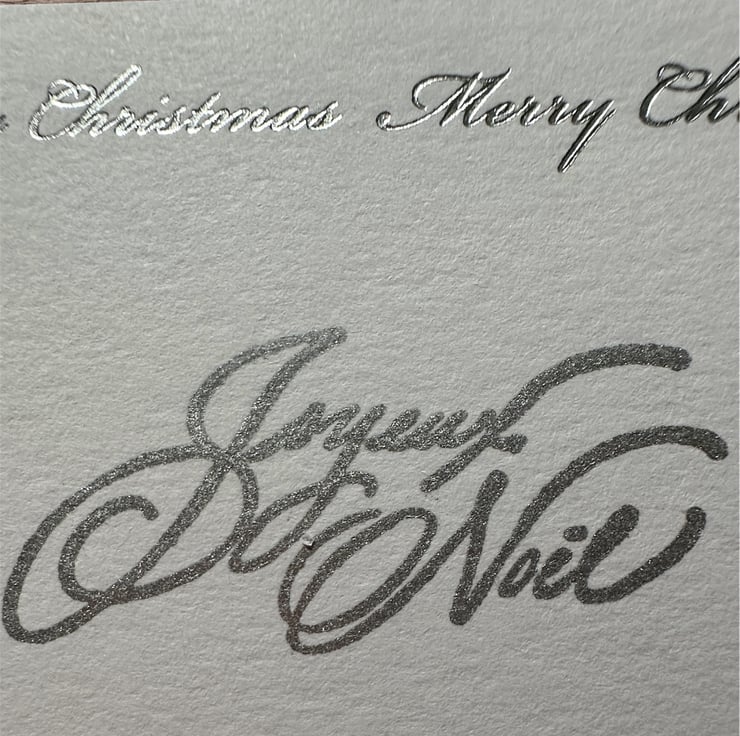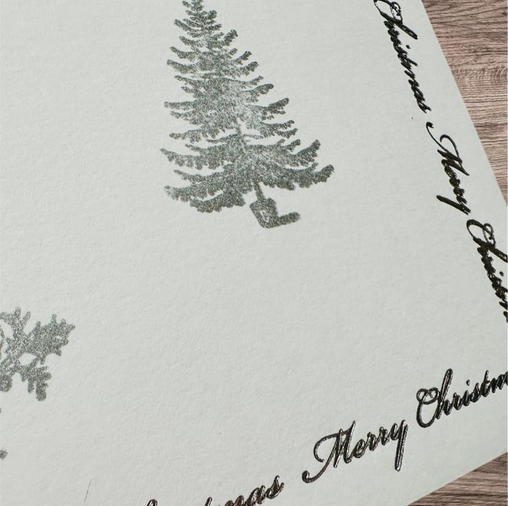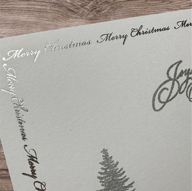 The outer edge of the quality thick cardhas been border printed with a solid silver coloured “Merry Christmas”