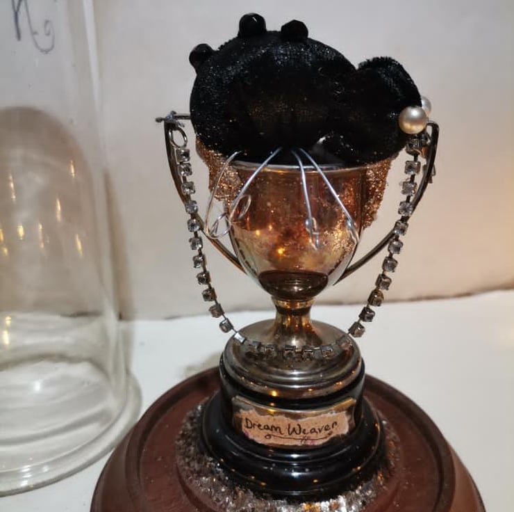 Using some of my quirky, vintage and antique finds and textile art I hand crafted this piece of a 'Dream Weaver'