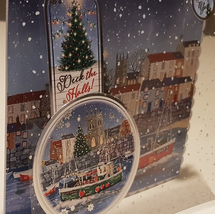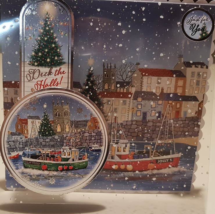 Luxury large Christmas card with a foil finish and a snowy cover providing a magical look