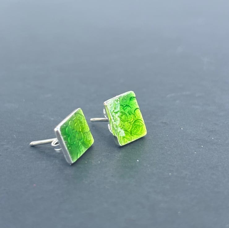 Green Enamel Studs, enamel earrings, green studs, rectangle studs, enamel, green