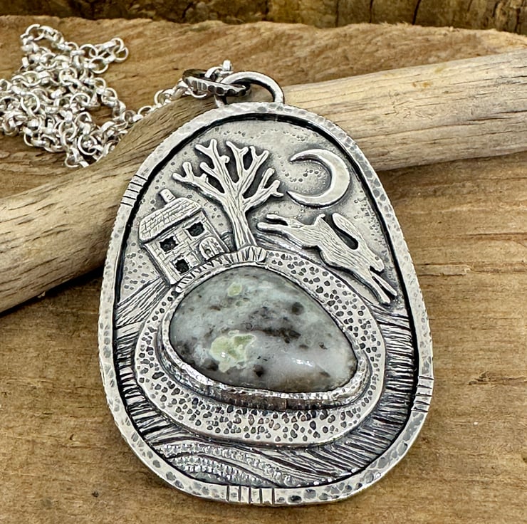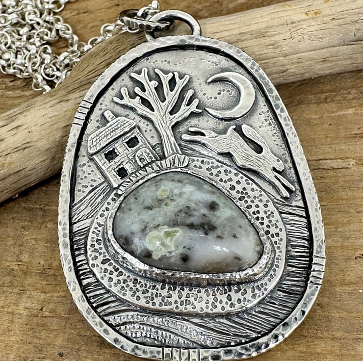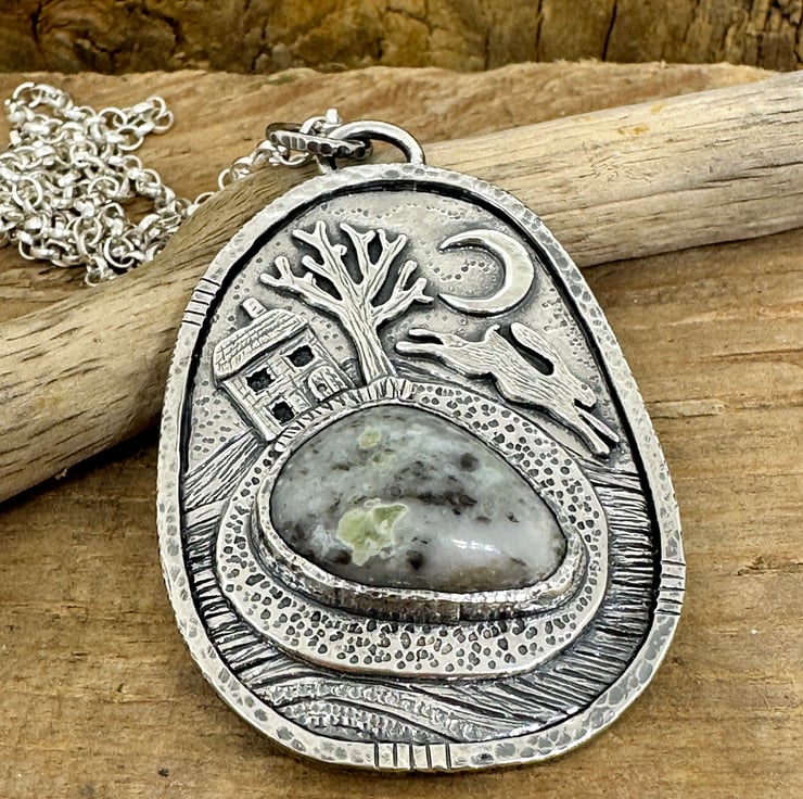 A hare pendant, inspired by my love of hares, mythology and the moon.