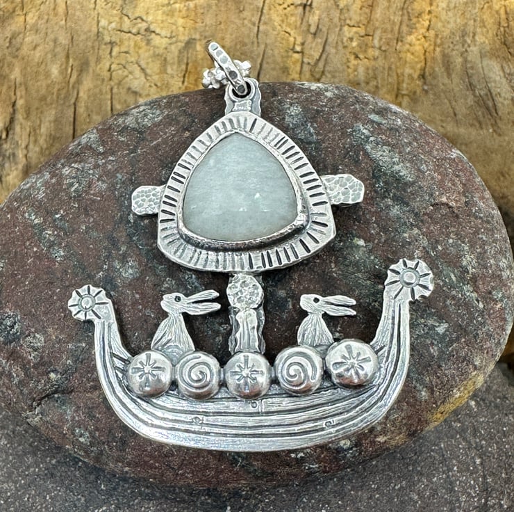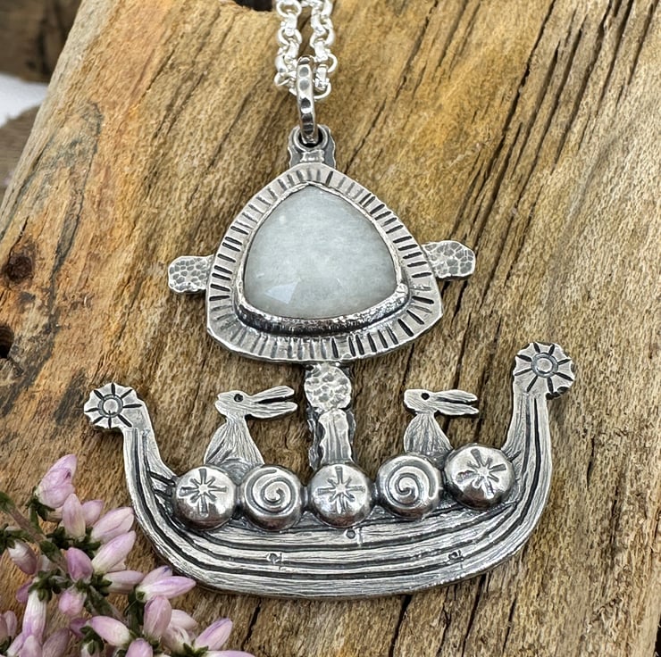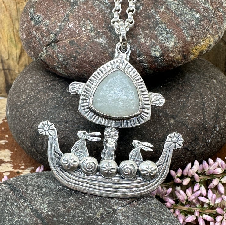 A Viking Ship Hare Pendant, combining my love of hares and the sea - these brave little ones are ready for adventure!