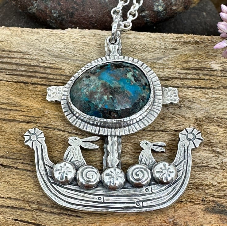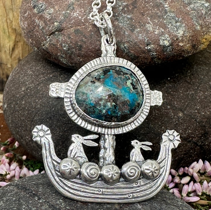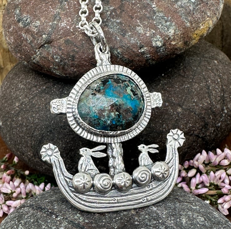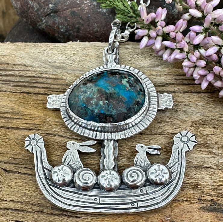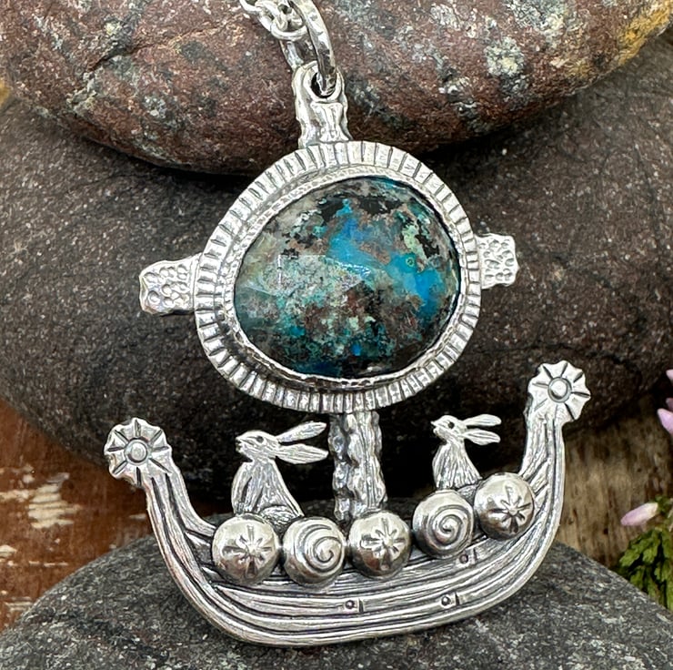 A Viking Ship Hare Pendant, combining my love of hares and the sea - these brave little ones are ready for adventure!