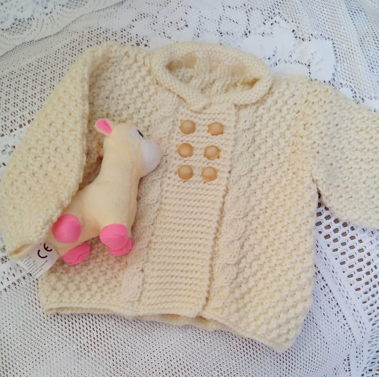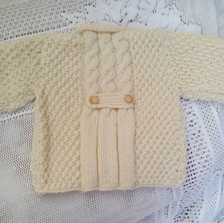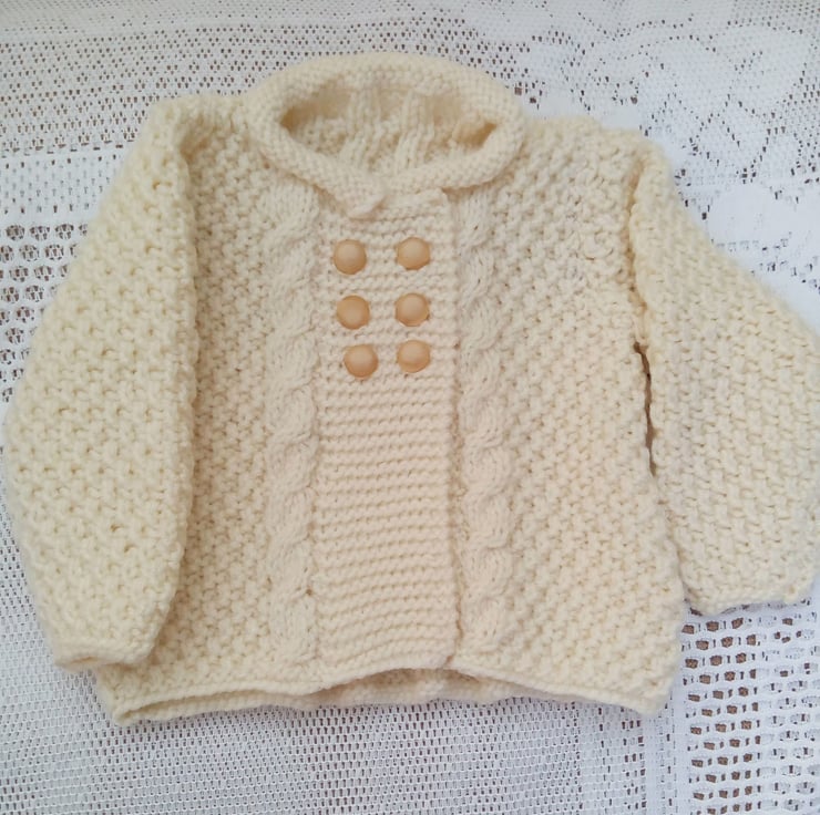 Baby's Aran Weight Cabled Frock Coat, Baby Shower Gift, New Baby Gift, Cabled Coat, Baby Clothes, Gift Ideas for Babies, Birthday Gift