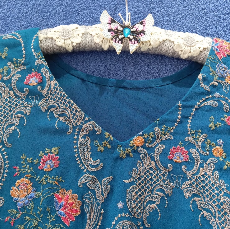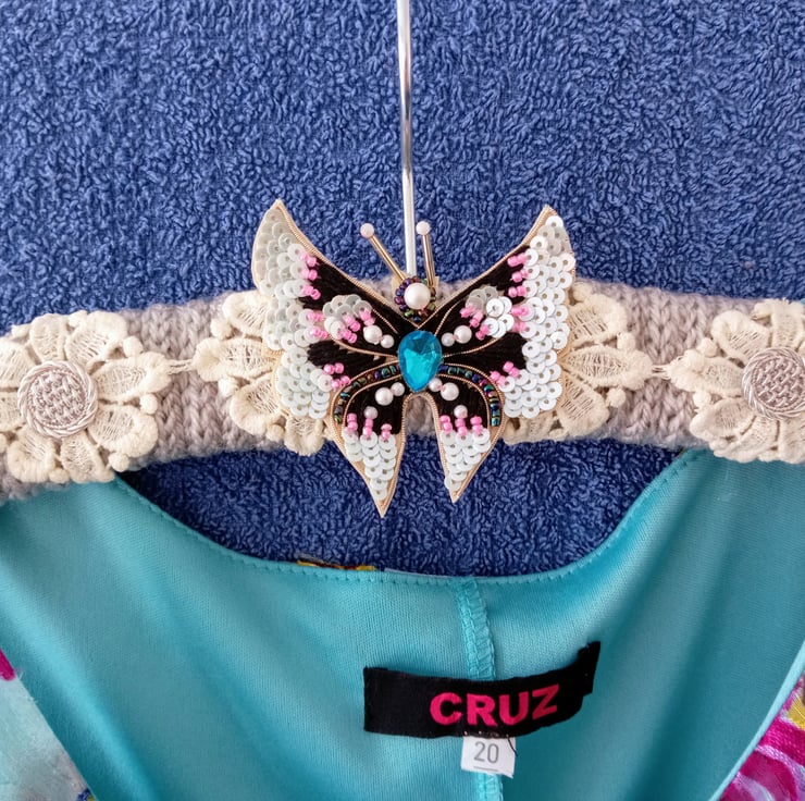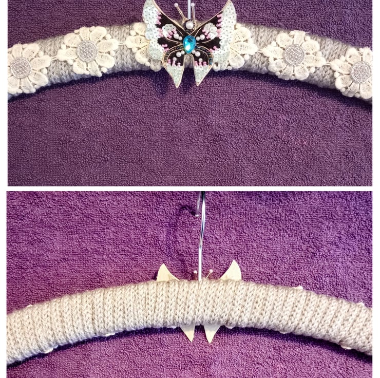 I got sick of things falling off hangers in my wardrobe I decided to rectify it. The inspiration was the beautiful fabric covered hangers that I’ve seen. These are slightly better at gripping the clothes, even satiny light fabrics stay in place on these.