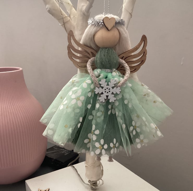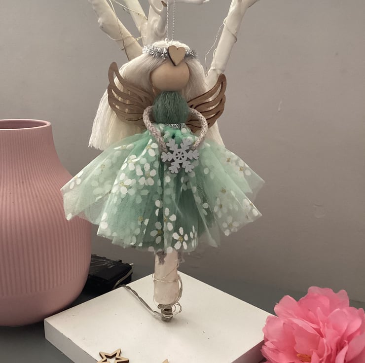 This adorable handmade Xmas angel has been made with love and a sprinkle of Xmas magic.