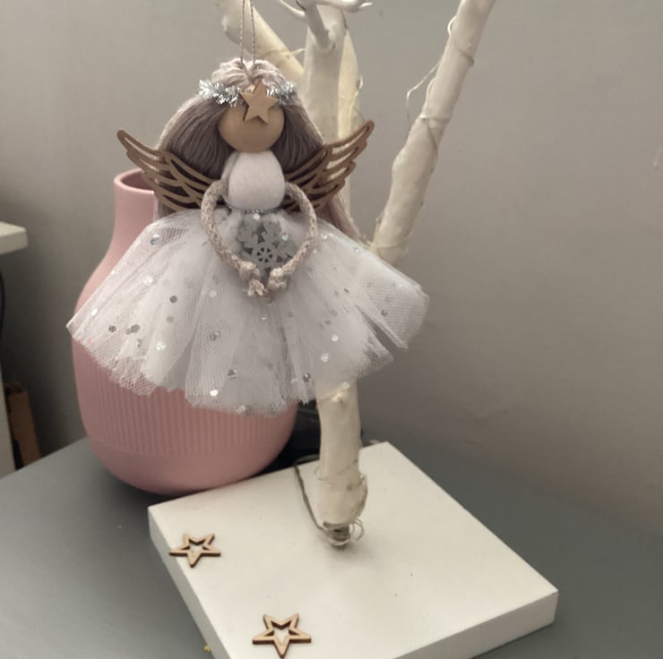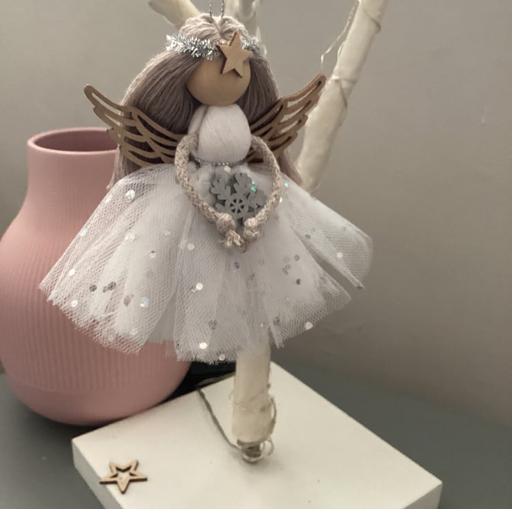 This adorable handmade Xmas angel has been made with love and a sprinkle of Xmas magic.