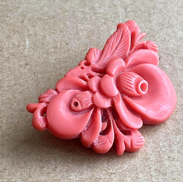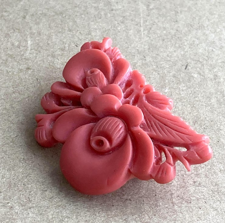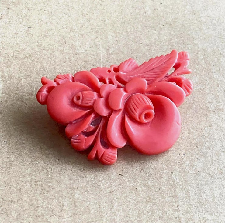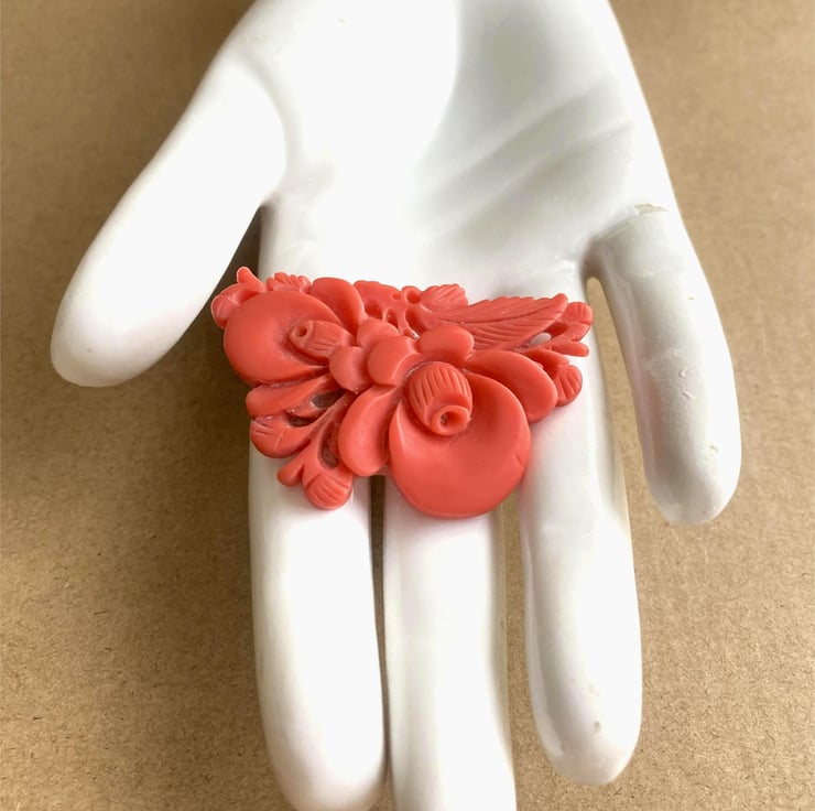 Upcycled Floral Design Resin Brooch In Coral Colour - handmade