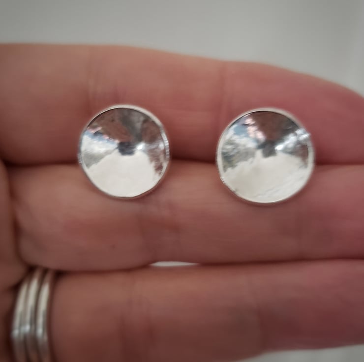 This is a pair of minimalist domed sterling Silver stud earrings with a beautiful shiny finish.