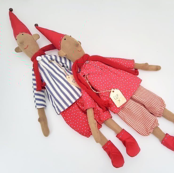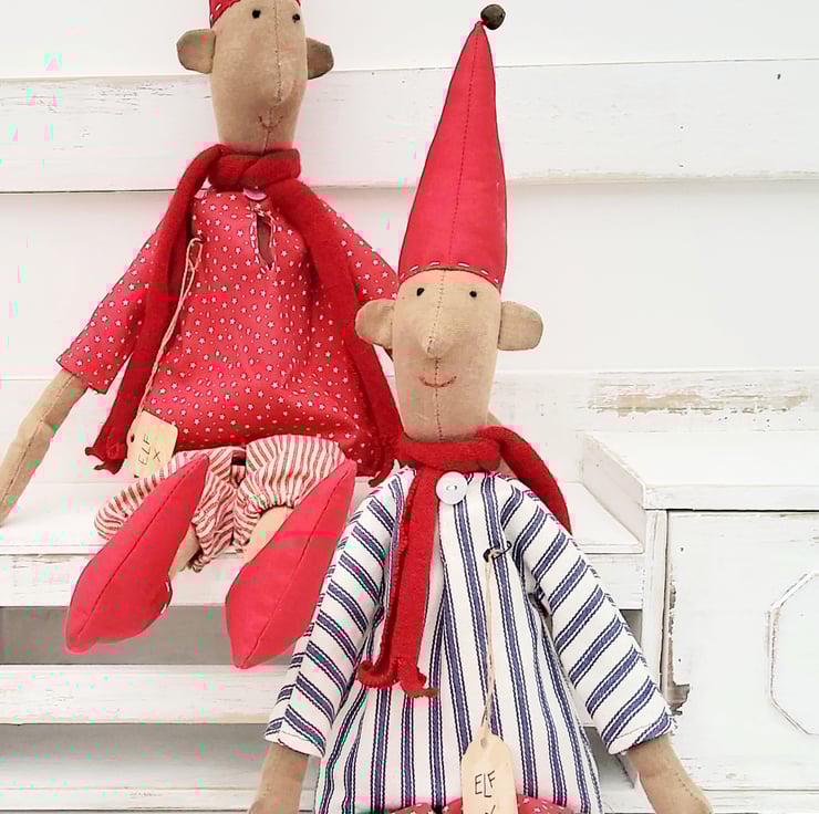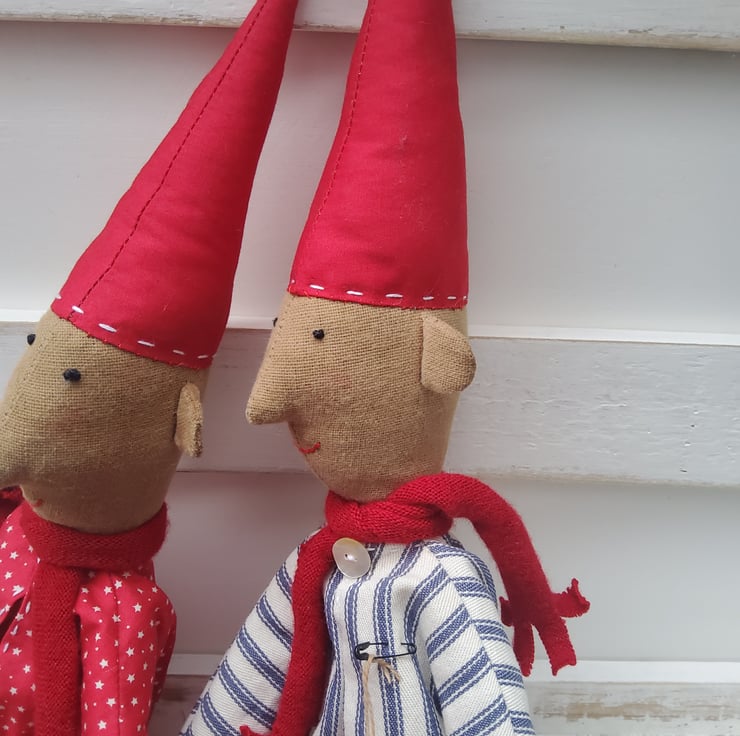Elf is about 51cms from his tootsies to the rusty bell on his hat. Elf also sports a wool scarf.