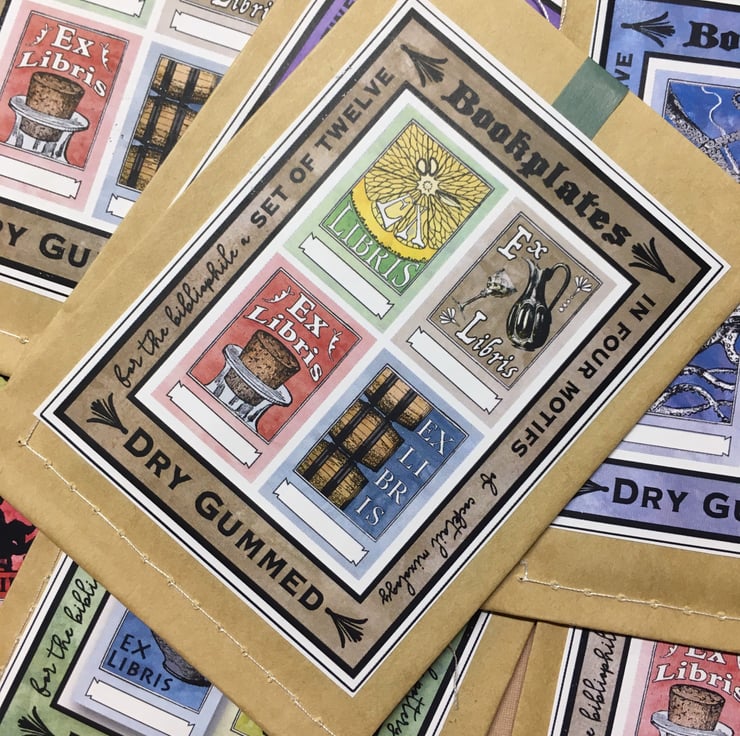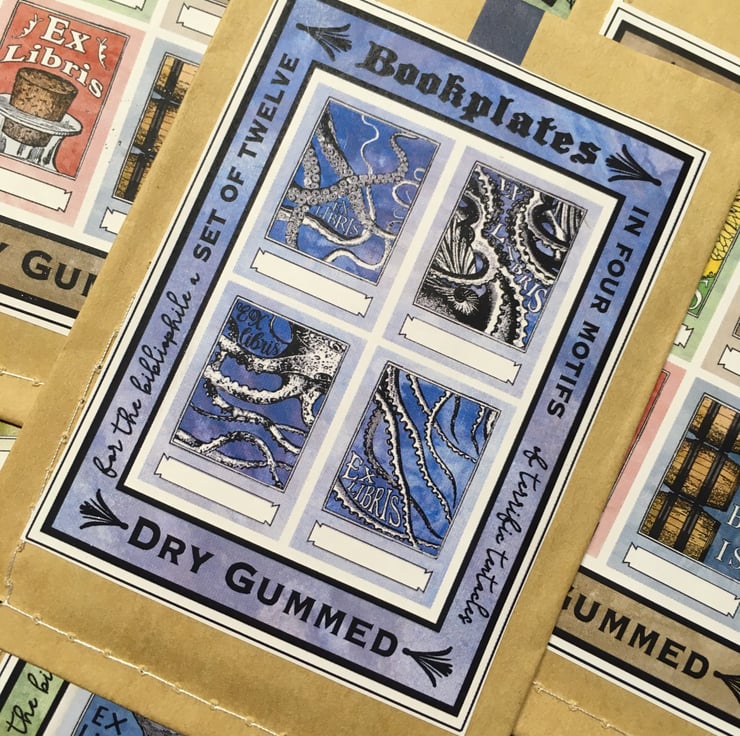 For the bibliophile - old school lick and stick bookplates, printed in full colour, just awaiting your signature. A range of patterns to suit many interests, these dry-gummed adhesive labels are a fine way to identify the contents of your personal library.