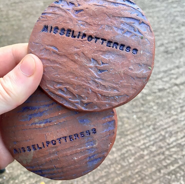 Measuring, just under 9 cm across, these terra cotta earthenware picture plates bear motifs of nature, cycles, life and death. Each one is hand carved and then painted, before being inlaid with oxide washes and finally glaze fired. The theme of each motif continues to the reverse, which is textured with custom made rollers and impression tools.