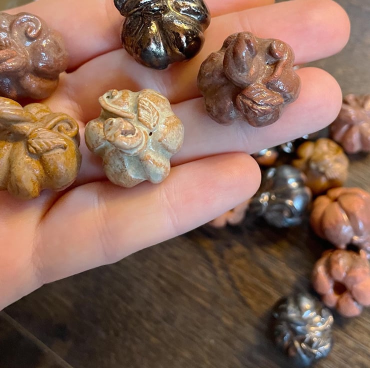These adorable tiny pumpkin charms are pottery - so they'll last for many autumns to come!
