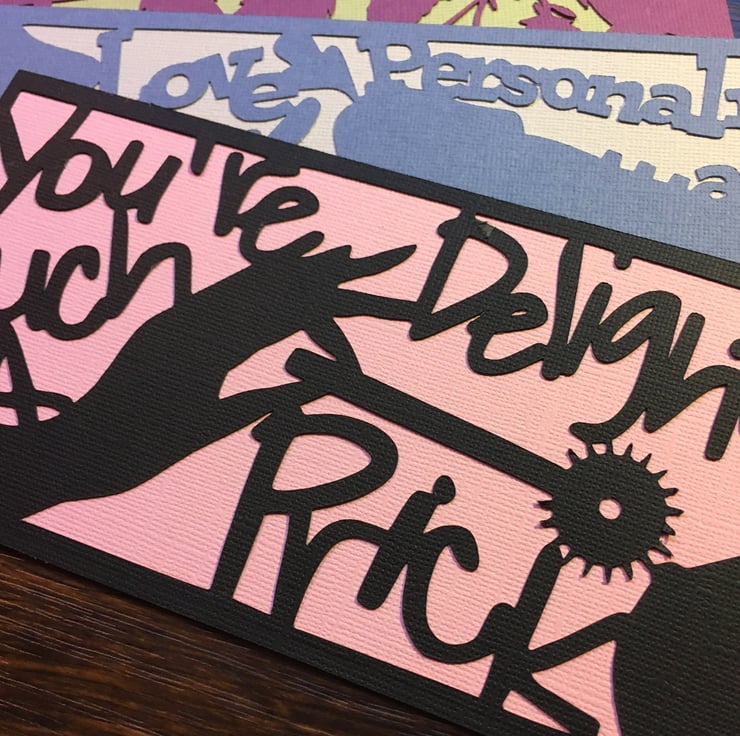 Each silhouette is cut from premium textured cardstock, then affixed to a folded card blank, DL sized. Comes with a complimentary colour envelope, and the darker coloured ones include a white sticker you can use, in case you only have a black pen handy.