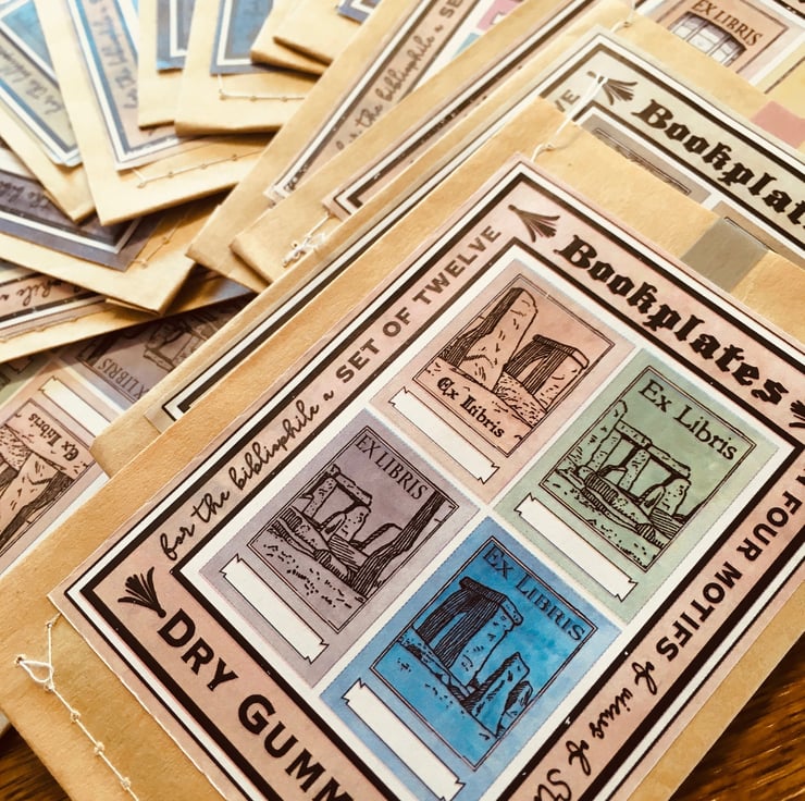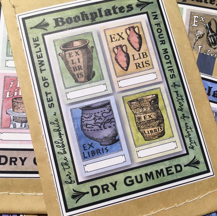 For the bibliophile - old school lick and stick bookplates, printed in full colour, just awaiting your signature. A range of patterns to suit many interests, these dry-gummed adhesive labels are a fine way to identify the contents of your personal library.
