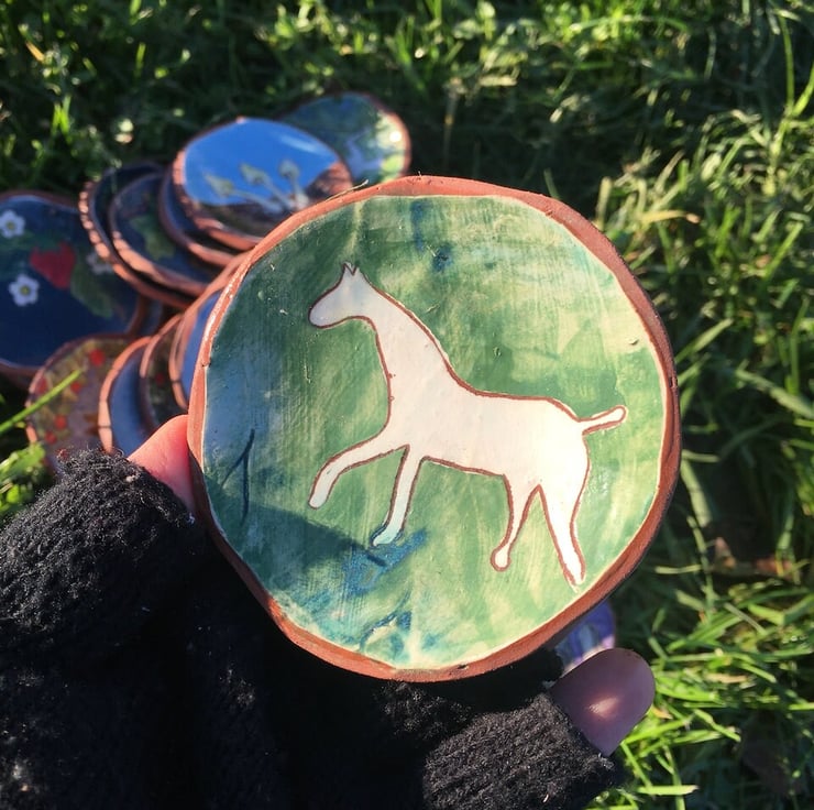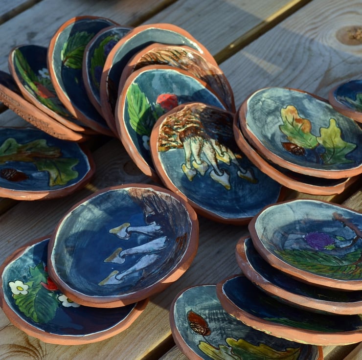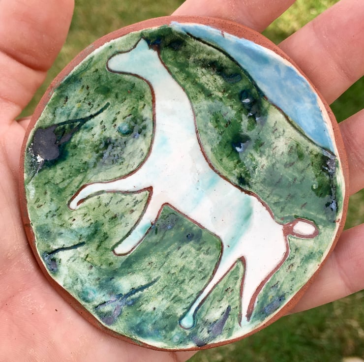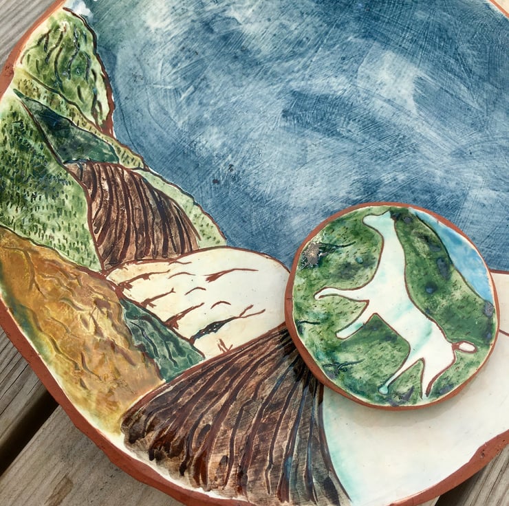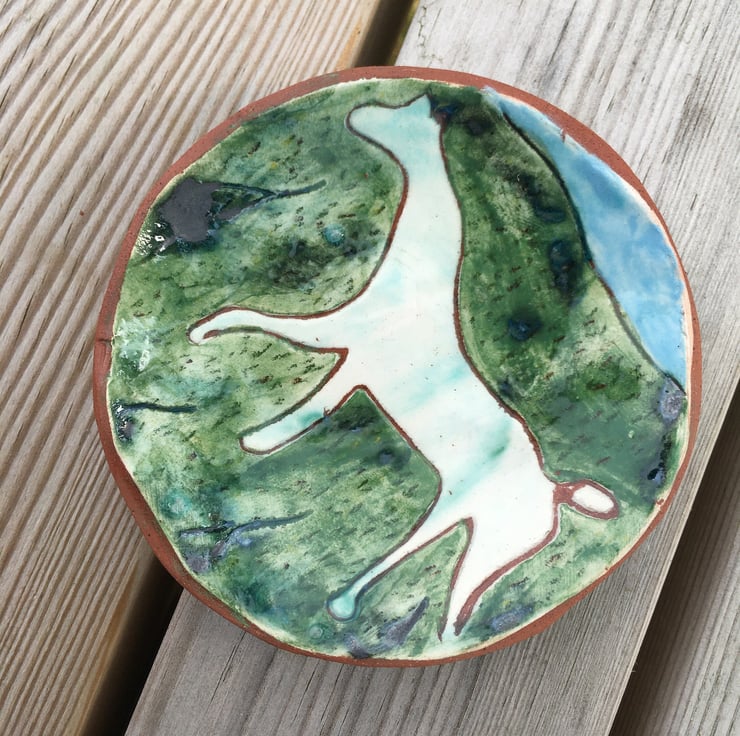 Curved sherds of earthenware to enliven your meal - this palm dish, after the Cherhill White Horse, would make a fine home for your rings while you get on with the washing up, or a lovely plate for the biscuit to accompany your cuppa.