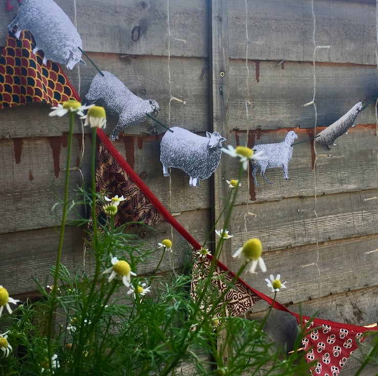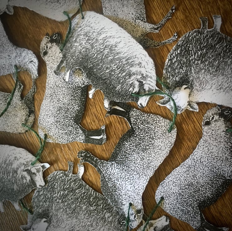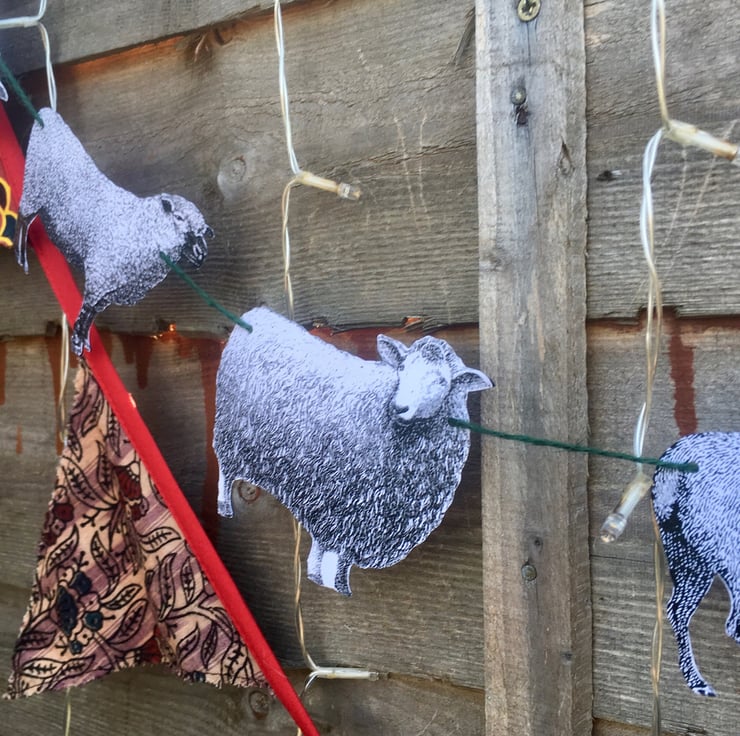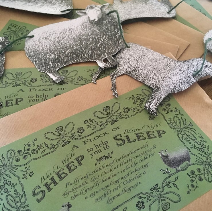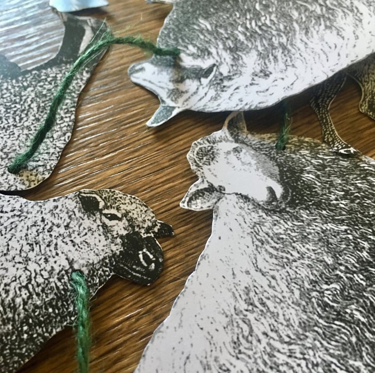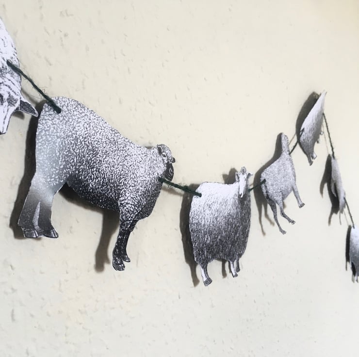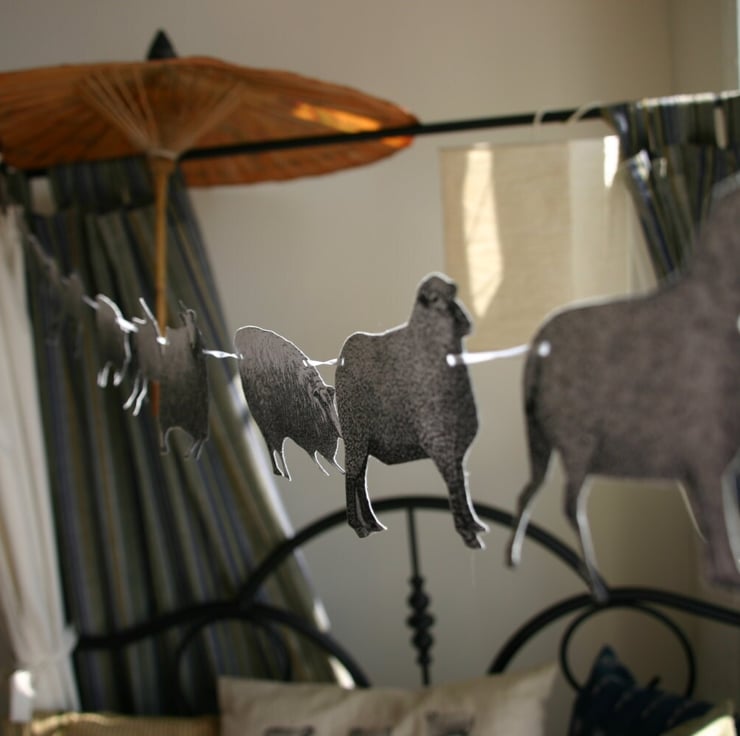 This garland of sheep images printed on white paper with a sturdy black backing includes 12 assorted sheep and a green twine string, which you may assemble to your liking and then proceed to count as often as necessary until desired result is achieved. Great as a housewarming present, for decorating a nap nook or guest room!