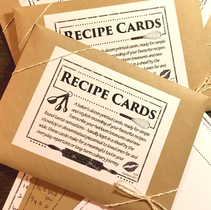 Transcribe your heirloom treasures and newfound taste sensations - handily kept in a sheaf by the stovetop or disseminated piecemeal to loved ones far and wide, these cards make for a meaningful tool in your