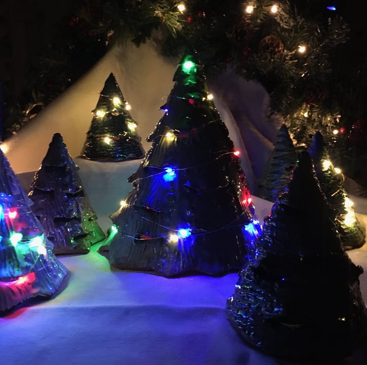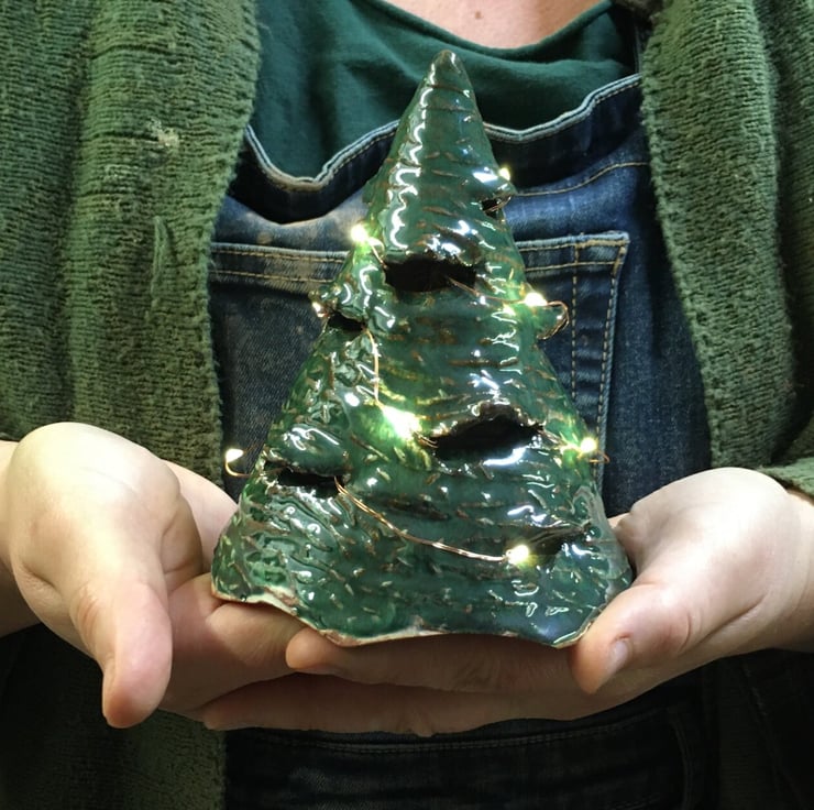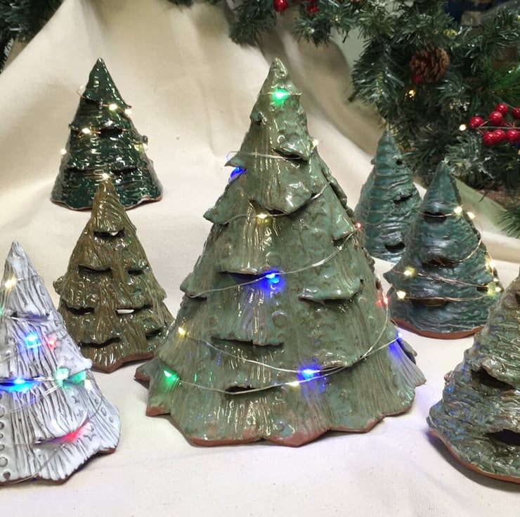 Don't fancy making your own little pottery tabletop Christmas Tree with one of our kits? Not to worry, this one is all finished for you! Includes lights and batteries to keep you twinkling all season long.