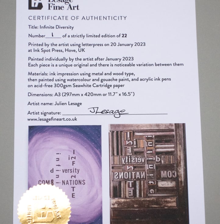 'Infinite Diversity' A3 letterpress poster, hand-painted: Limited Edition of 22