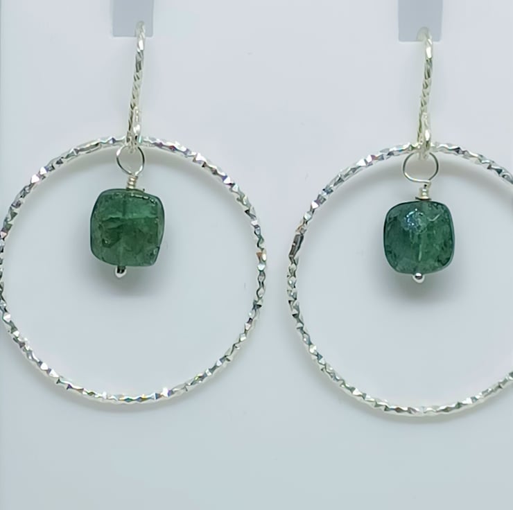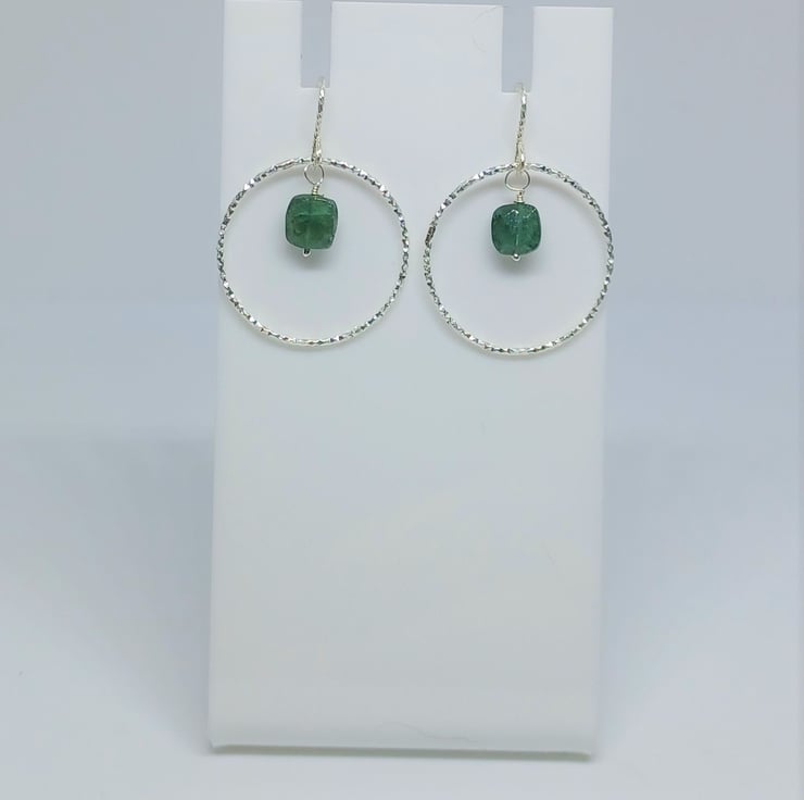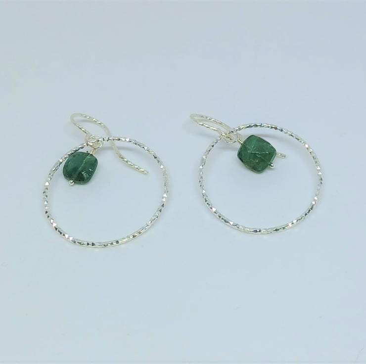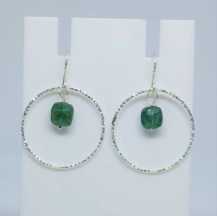 Green Tourmaline and Sterling Silver Sparkly Textured Hoop Earrings, Gemstone Jewellery Gift for Her, Tourmaline Jewellery Gift, Boho Chic