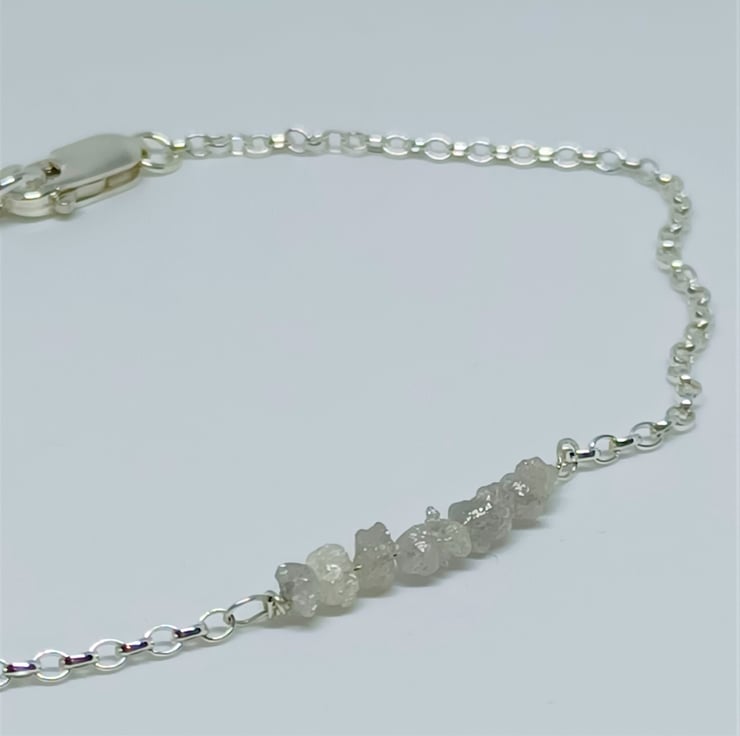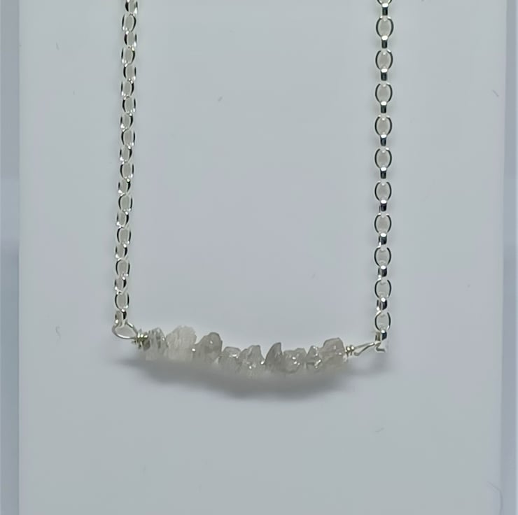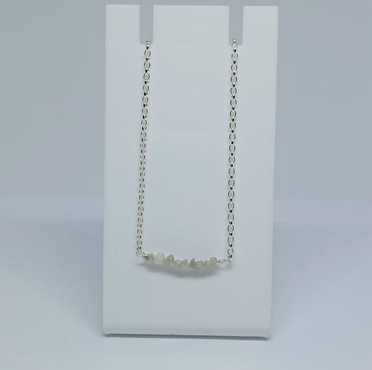 Elevate your style with my exquisite Silver Grey Rough Diamond Chip Bar Necklace, expertly crafted on a sterling silver chain. This unique piece features a horizontal bar adorned with rough diamond chips, exuding natural elegance and a touch of rustic charm. Perfect for layering or wearing alone, this necklace is a versatile addition to any jewellery collection.