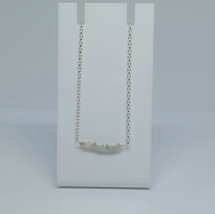 Silver Grey Rough Diamond Chip Bar Necklace on Sterling Silver Chain, Diamond Jewellery Gift for Her, Ethical Diamond Necklace