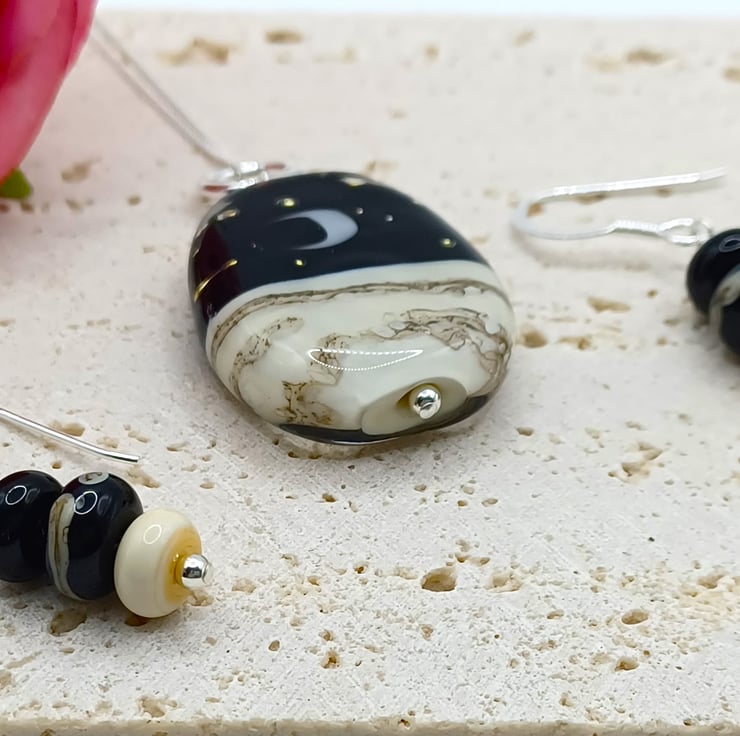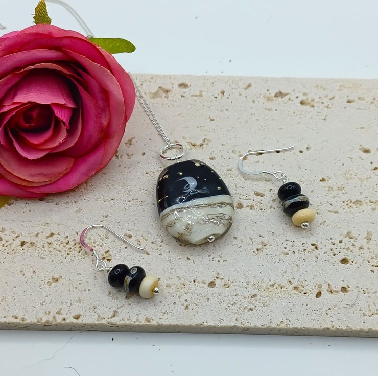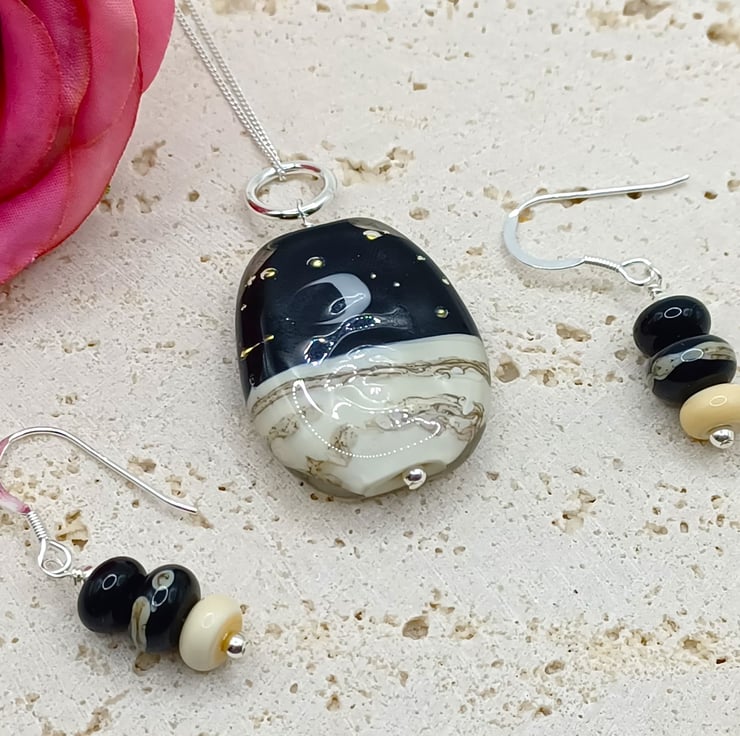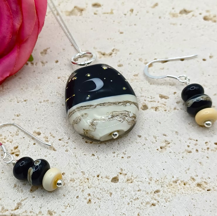 Handmade Lampwork Glass Moon Jewellery Set, Sterling Silver Pendant and Earrings, Jewellery Gift for Her, Moon Jewellery Set, Moon Gift
