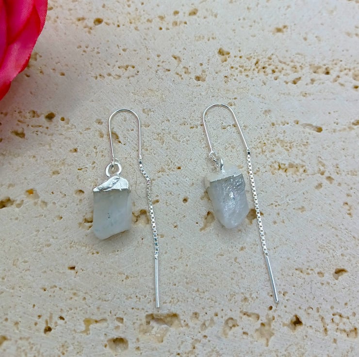 These fabulous sterling silver threaders each have a lovely rough moonstone gemstone drop