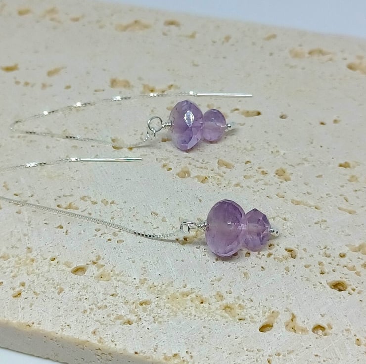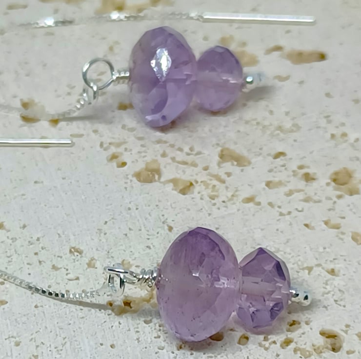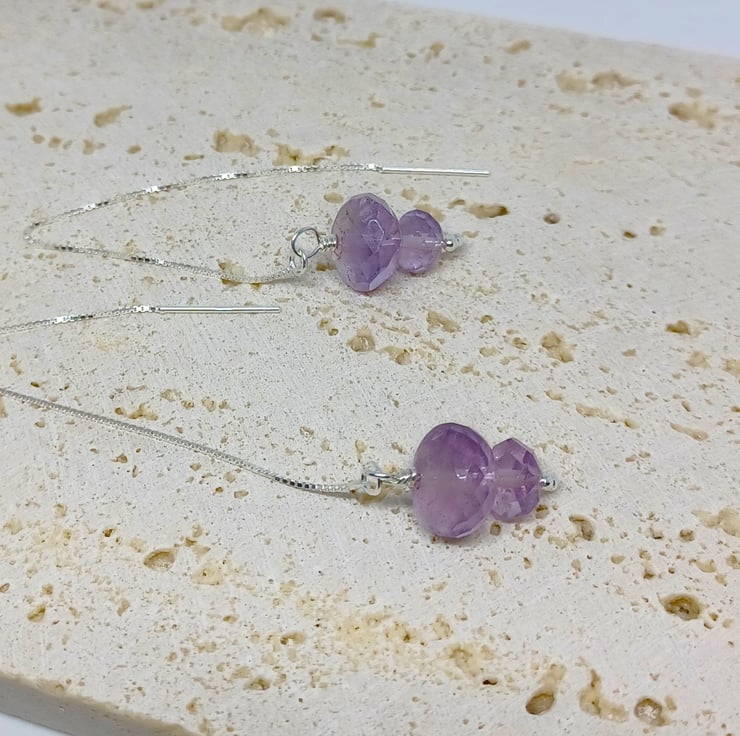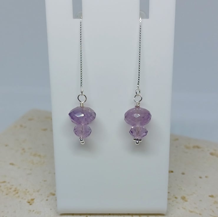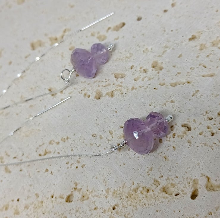 A duo of faceted Amethysts in my favourite thread through style the sterling silver earwires measure approximately 4 , and the beauty of this style is that you can wear them as long or short as you like!