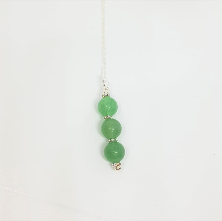 This trio of 8mm gemstones is interspersed with little sterling silver flower beads, which set them off beautifully. The gemstone is Aventurine, which is a type of quartz. Aventurine is known as a heart healer. It promotes compassion and empathy