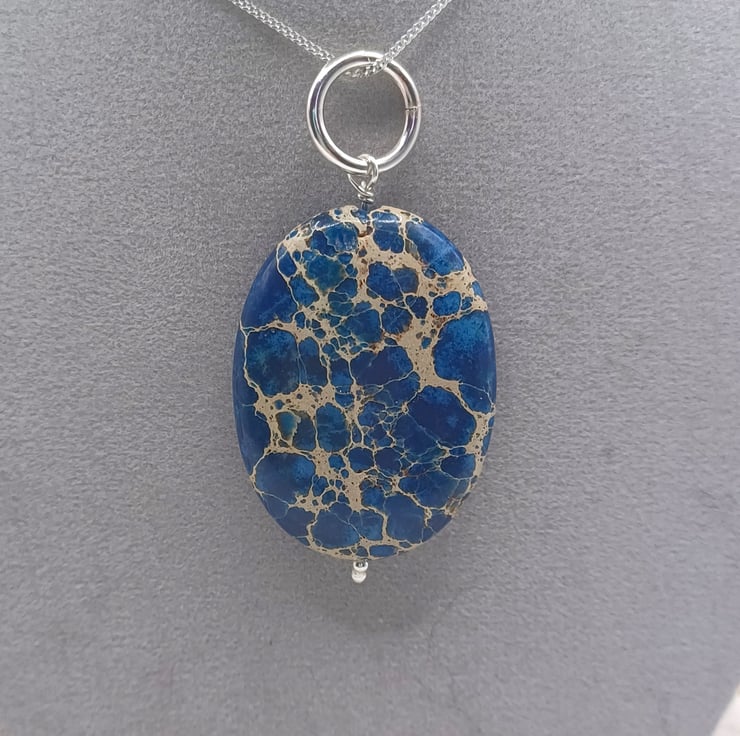 The striking markings of the jasper remind me of the ocean, so are just perfect for the summer! Supplied on an 18 inch sterling silver chain (style may vary). One pendant supplied from my current stock.
