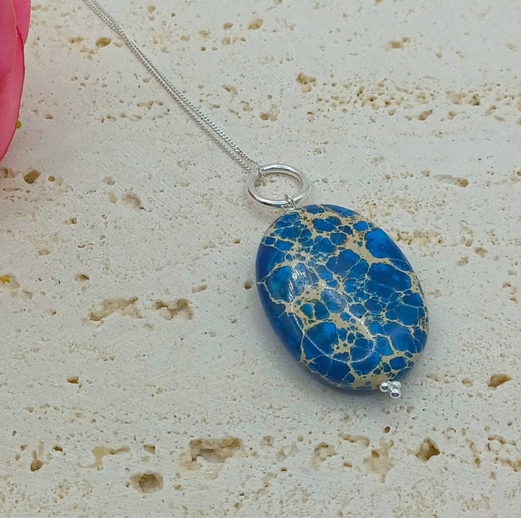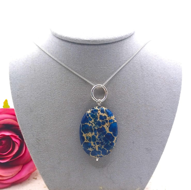 Blue Impression Jasper Pendant, Ocean Necklace, Sterling Silver Pendant, Jasper Jewellery Gift for Her, Sea Inspired Gift, Jasper Necklace