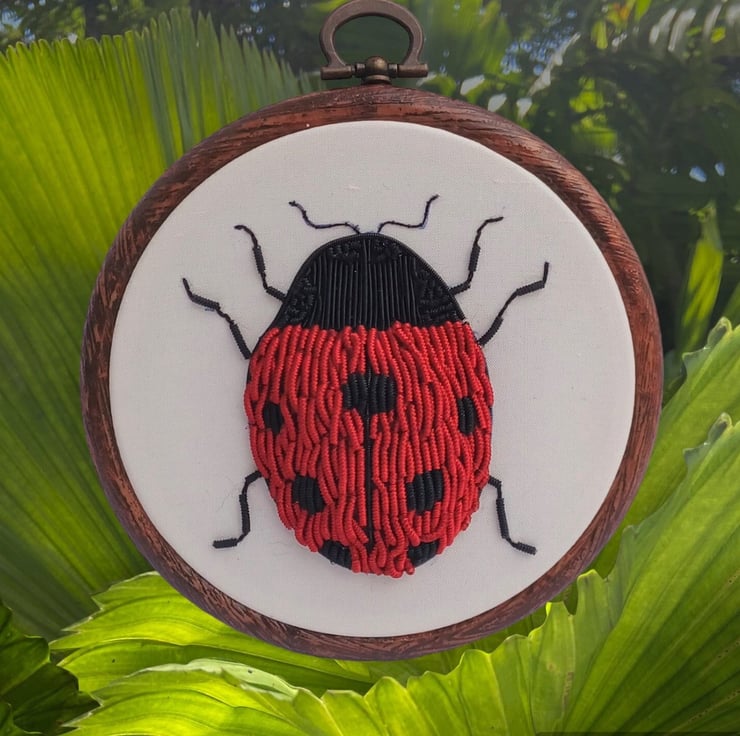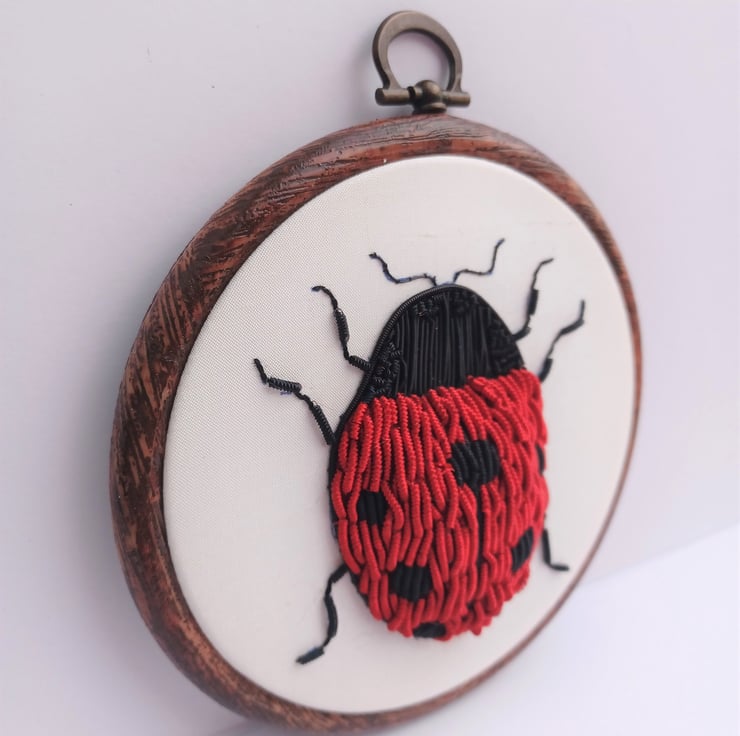 3D Stumpwork Goldwork Ladybird Embroidery Hoop, Ladybird Embroidery, Goldwork Ladybird, Stumpwork Ladybird, Hand Embroidery Hoop
