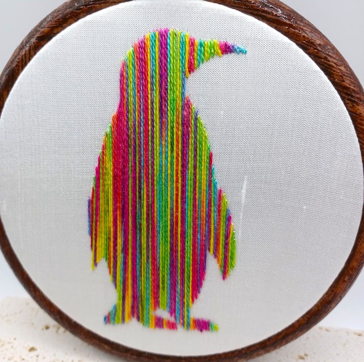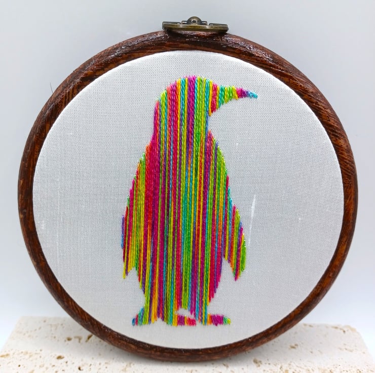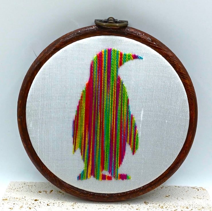 Rainbow Penguin Embroidery, Embroidery Hoop, Hand Embroidery, Modern Embroidery, LGBTQ Embroidery, Pride Gift, Rainbow Gift, Penguin Art
