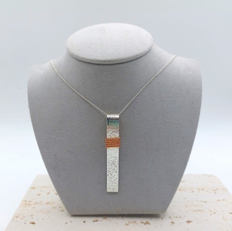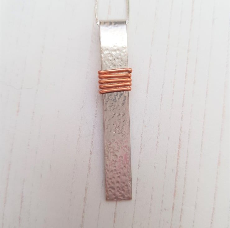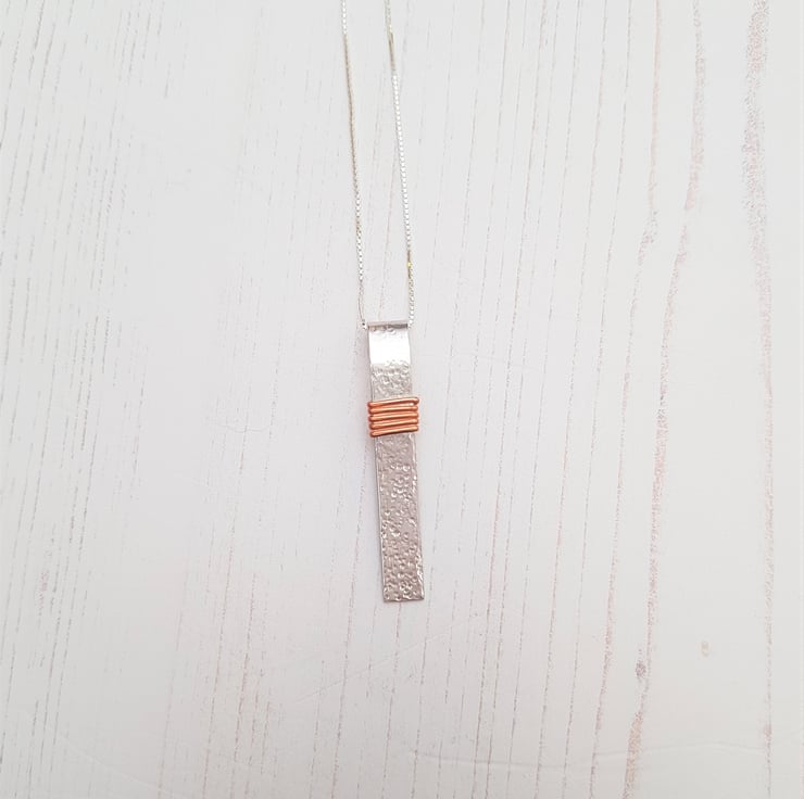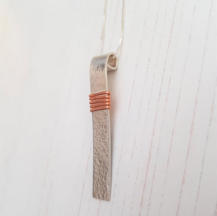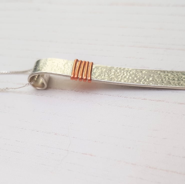 Copper Wire Wrapped Sterling Silver Rollover Bar Necklace, Sterling Silver Pendant, Mixed Metal Jewellery, Silver Gift for Her, Copper Gift