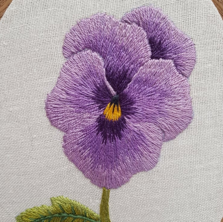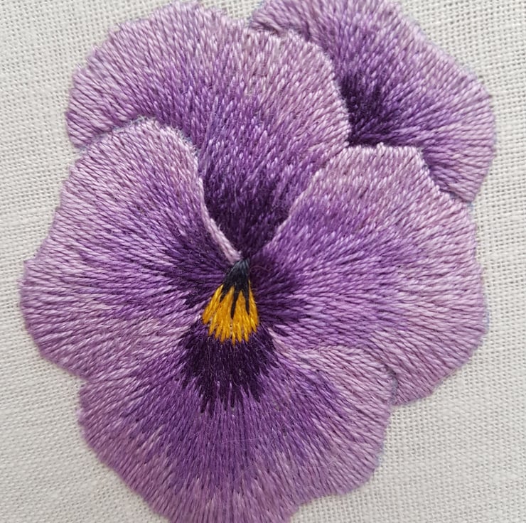 Pansy I love working with these variegated threads these were hand dyed in South Africa, and they give the most wonderfully subtly effect.