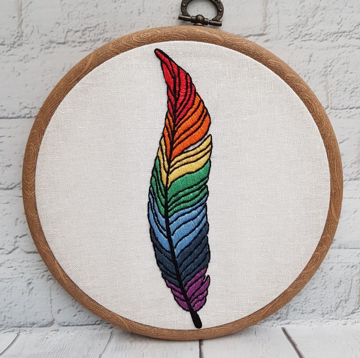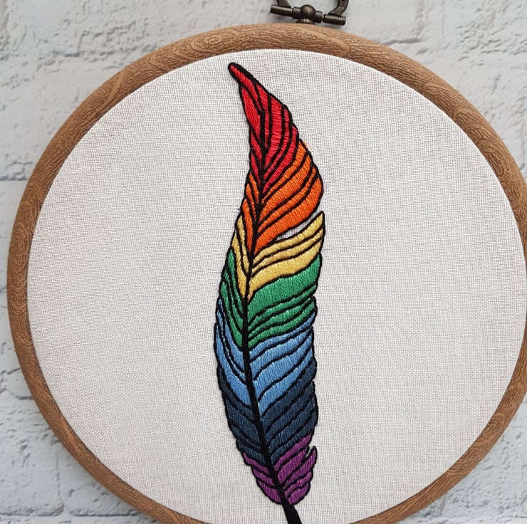 Completely hand embroidered on to linen, and framed in a 6 inch hoop, which is backed with felt for protection. The hoop has an integral hanger, so it arrives ready to pop on your wall.