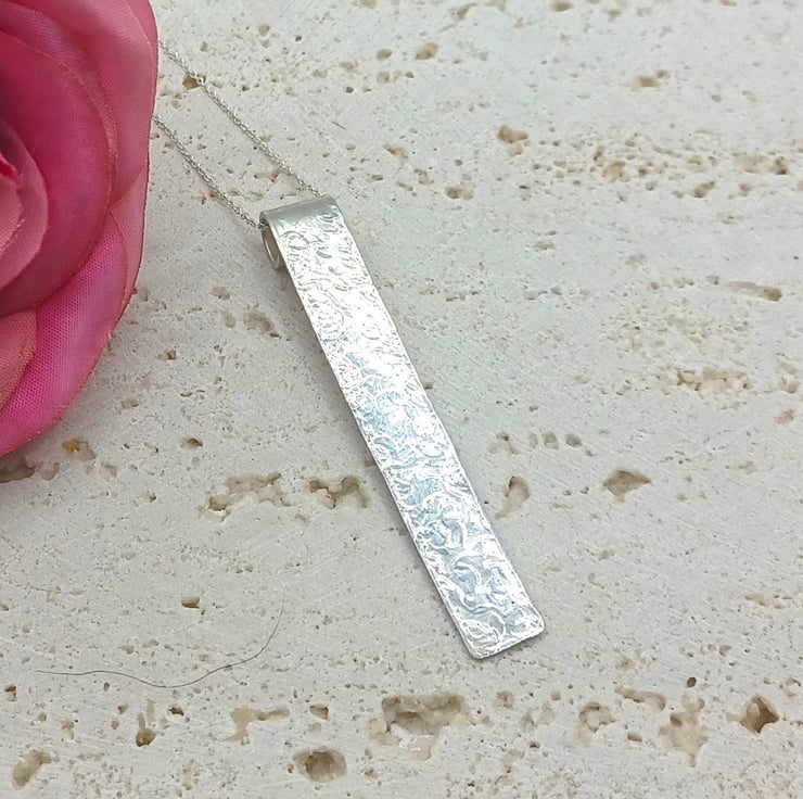 Sterling Silver Hammered Circles Texture Rollover Bar Pendant Necklace, Textured Metal Jewellery, Silver Gift for Her, Bubble Texture Gift