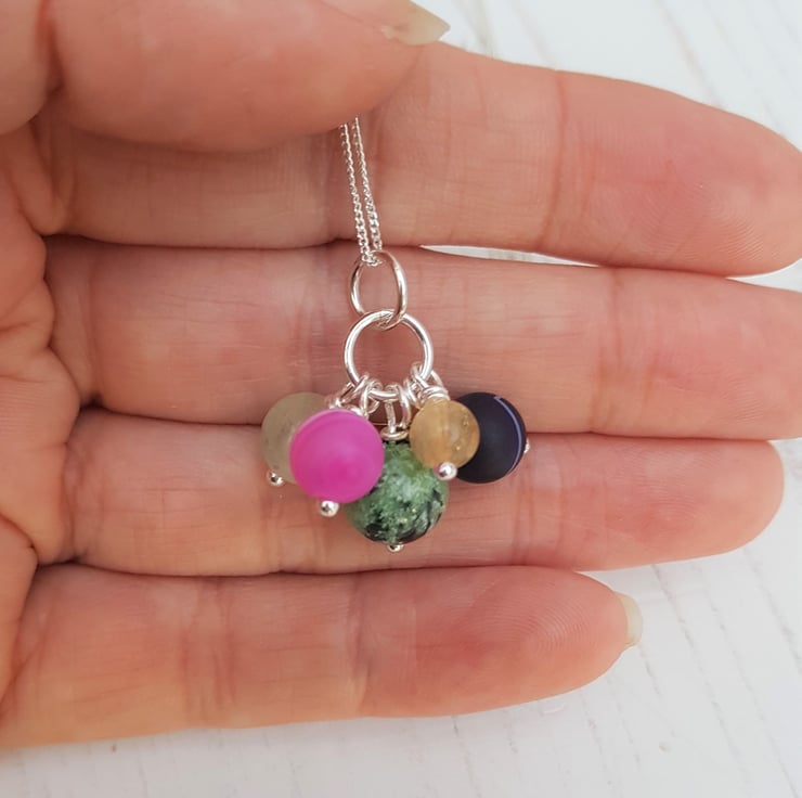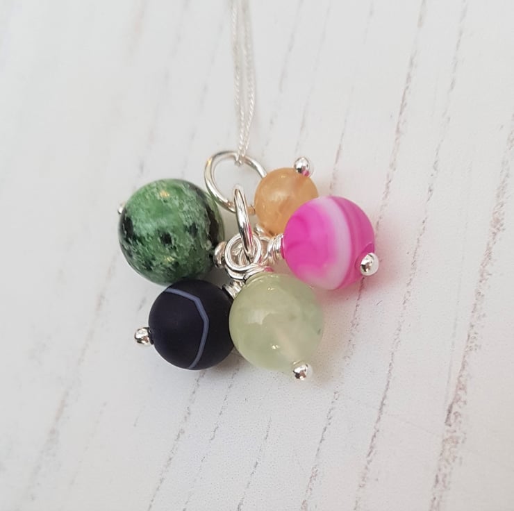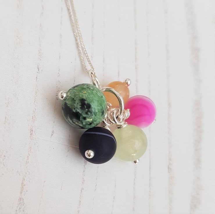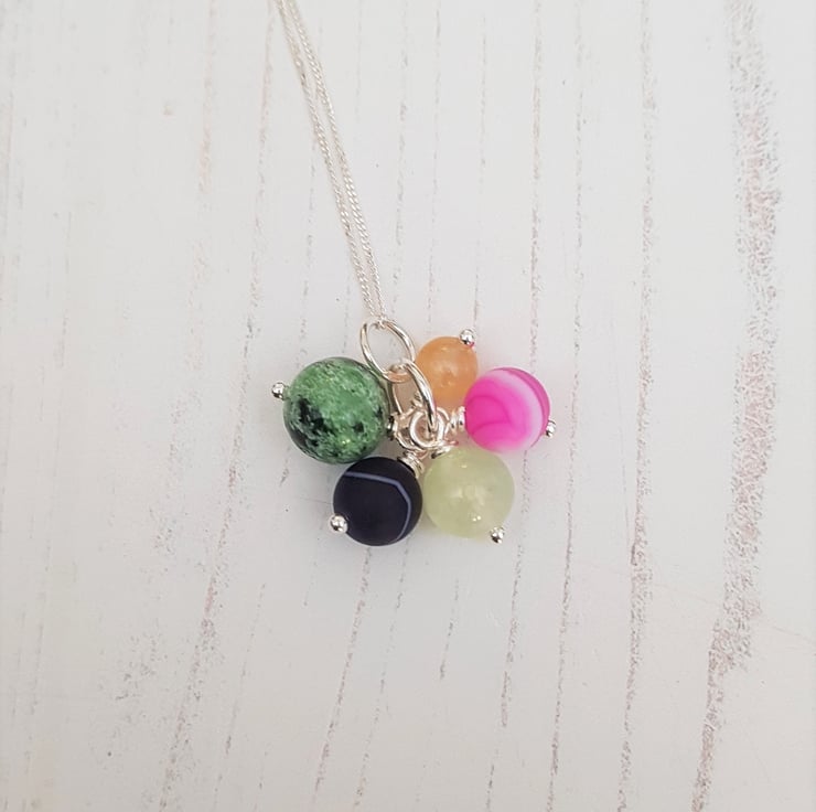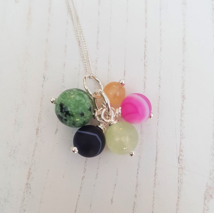 Multi Gemstone Agate and Sterling Silver Pendant Necklace
