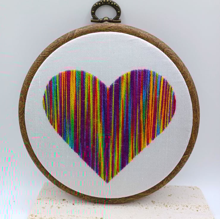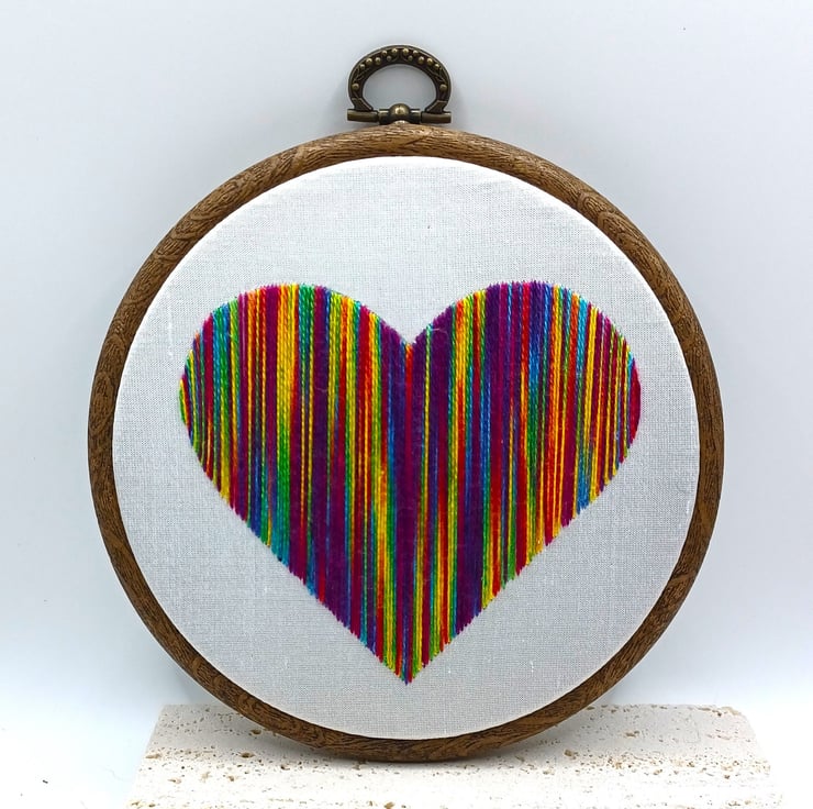 Rainbow Heart Embroidery, Embroidery Hoop, Hand Embroidery, Modern Embroidery, LGBTQ Embroidery, Pride Gift, Rainbow Gift, Heart Wall Art