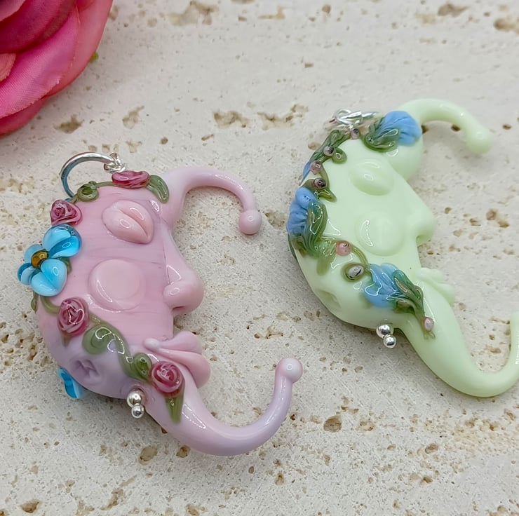 Lampwork Glass Moon Pendant, Sterling Silver Jewellery, Moon Face Pendant, Floral Moon Jewellery Gift, Celestial Pendant, Astronomy Gift