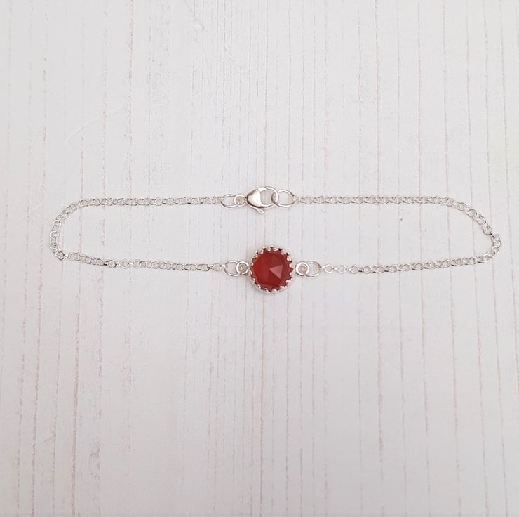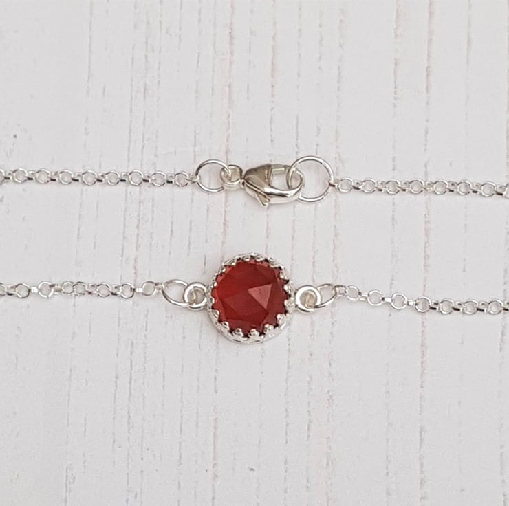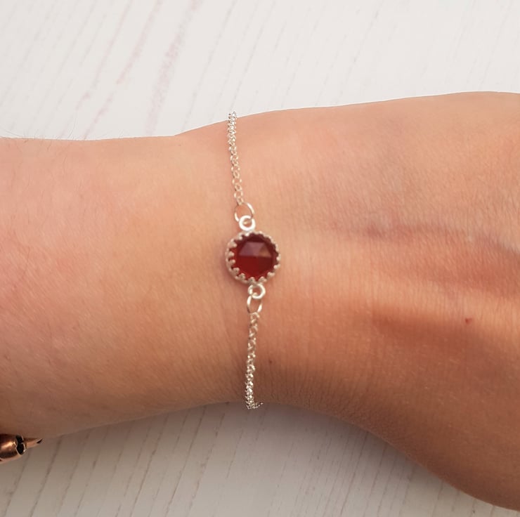Handcrafted Hessonite Garnet and Sterling Silver Bracelet, Rose Cut Cabochon Jewellery, January Birthstone Gift, Gemstone Bracelet Gift