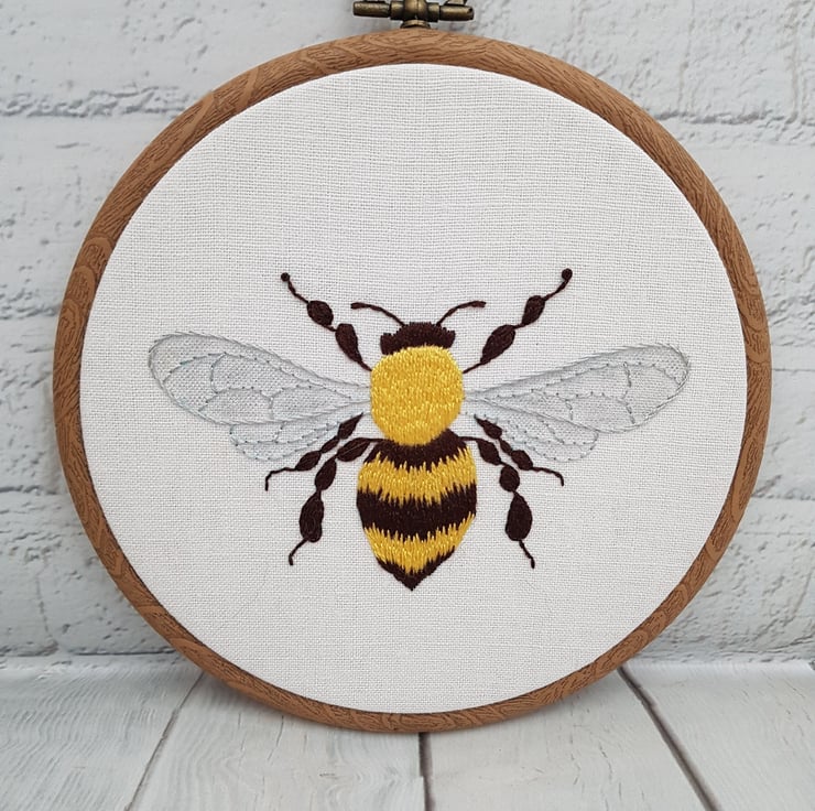 Hand Embroidery Bee Hoop, Bee Wall Art, Gift for Bee Lovers, Nature Gift, Silk Embroidery Thread, Bee Wall Hanging, Nature Embroidery Gift