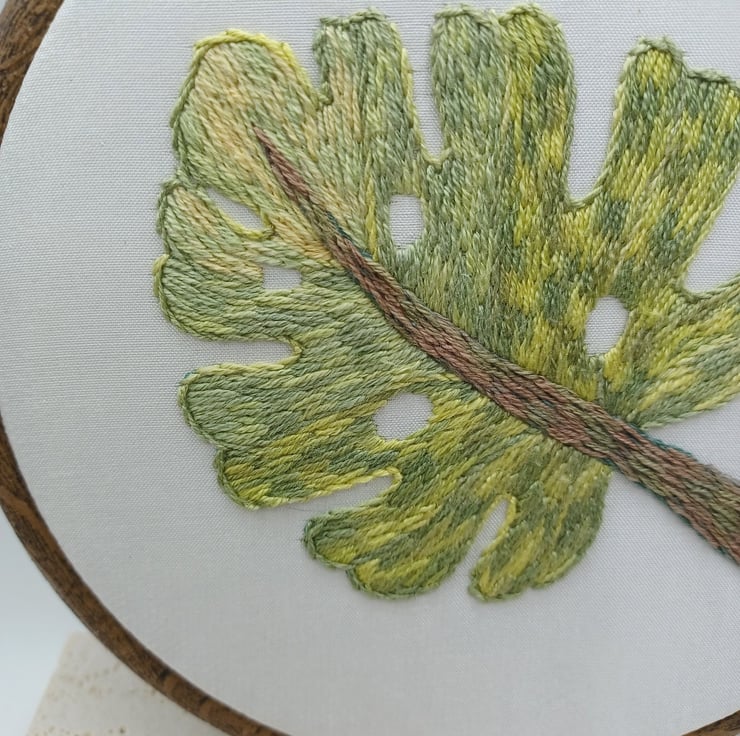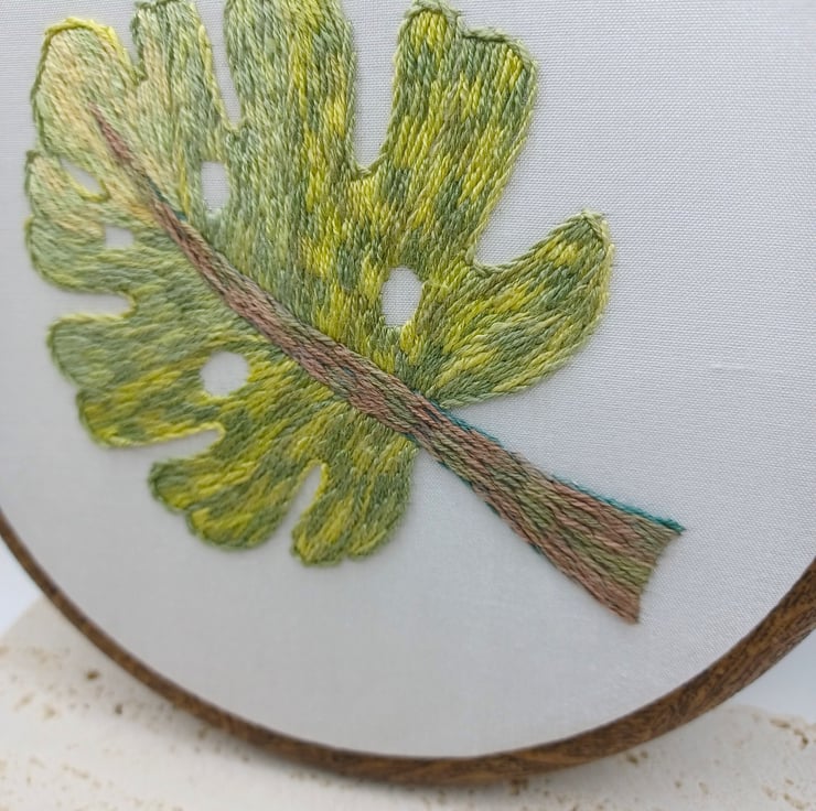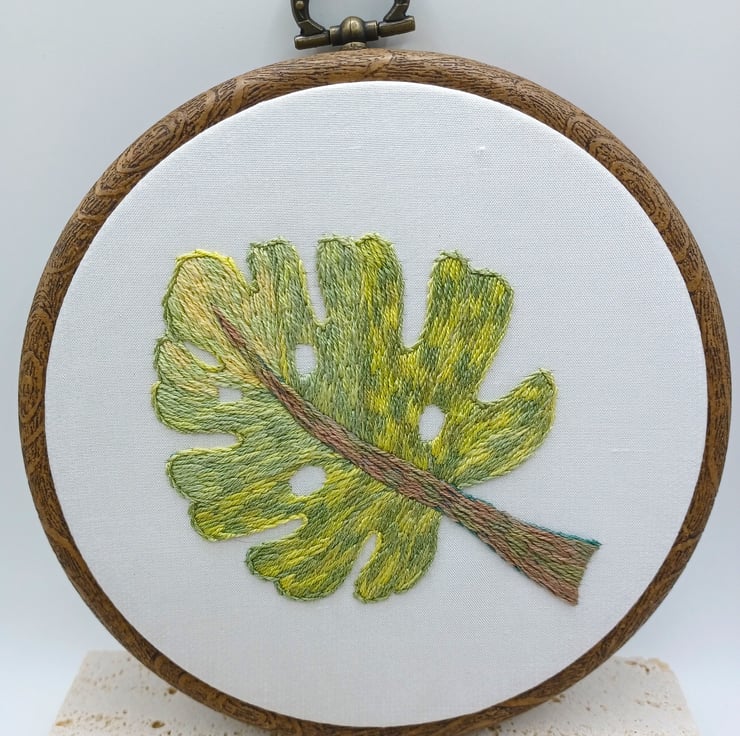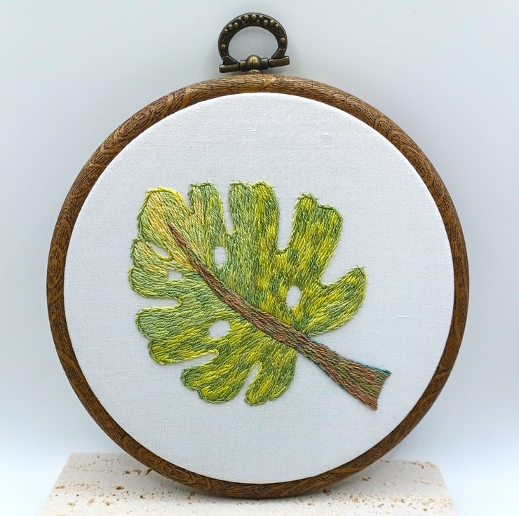 Monstera Leaf Embroidery Hoop, Hand Embroidery, Foliage Embroidery, Nature Lover Gift, Monstera Wall Art, Variegated Embroidery Gift for Her