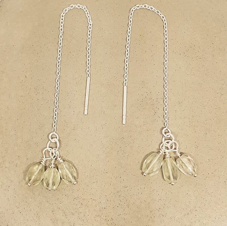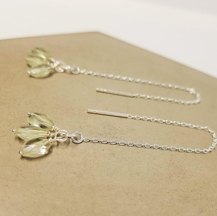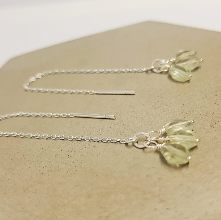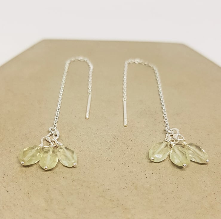 Green Amethyst Threader Earrings, Prasiolite Threader Earrings, Amethyst Sterling Silver Earrings, Green Amethyst Trio Earrings