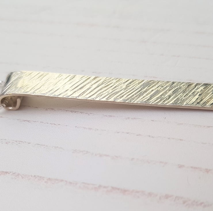 Sterling Silver Hammered Texture Lines Rollover Bar Pendant Necklace, Sterling Silver Bar Pendant, Silver Gift for Her, Hammered Silver Gift