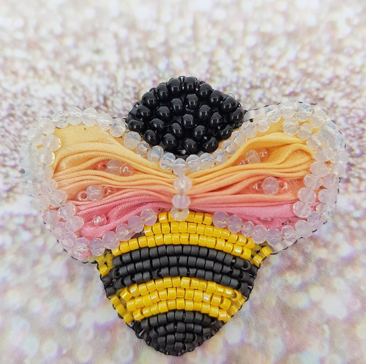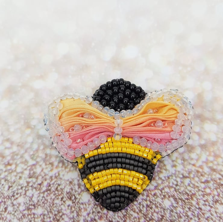 Hand Embroidered Shibori Ribbon Beadwork Bee Brooch, Unique Artisan Jewellery, Nature Inspired Brooch, Handmade Bee Jewellery, Bee Gift,