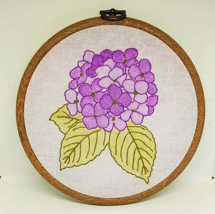 Purple Hydrangea Flower Hand Embroidery Hoop for Gardeners, Floral Wall Art Gift for Her, Flower Embroidery Art, Embroidered Wall Art Gift